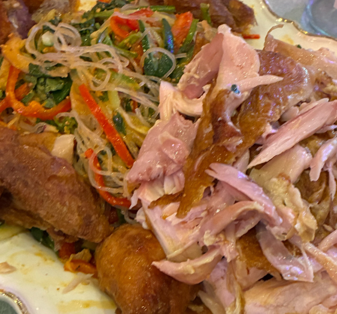 또한 이곳에서는 치킨을 북경오리 스타일로 손님 앞에서 직접 손질해주는 퍼포먼스도 제공합니다. 이 과정 하나만으로도 오마카세 다운 특별함이 느껴집니다.특히 인상적인 것은 가슴살을 따로 발라 냉채로 만들어주는 서비스입니다. 뻑뻑해지기 쉬운 가슴살을 오이, 파채, 특제소스와 함께 냉채 스타일로 제공해 산뜻하게 즐길 수 있도록 한 세심함이 돋보입니다.