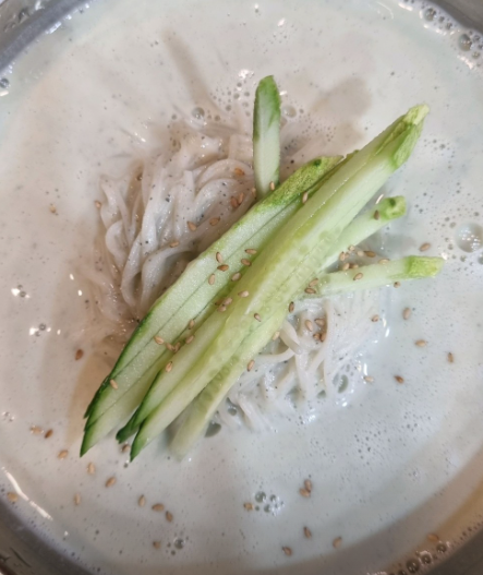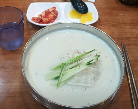 이 식당의 콩국수는 시원함과 고소함의 균형이 절묘하게 맞춰져 있습니다. 콩물은 직접 삶고 갈아 만든 것으로, 입안 가득 퍼지는 고소한 맛이 진하게 느껴지며, 냉장 숙성을 통해 더욱 차갑고 부드러운 질감을 자랑합니다. 면 또한 흔한 밀가루면이 아닌 쫄깃하면서도 콩국물과 어우러질 때 거슬림 없는 식감을 갖추고 있어, 많은 손님들이 “한 그릇으로 부족하다”며 추가 주문을 하기도 합니다. 무엇보다 뒷맛이 텁텁하지 않고 깔끔하다는 평이 많아, 기름진 음식에 지친 여름철 입맛을 제대로 살려주는 한 끼로 손꼽힙니다.